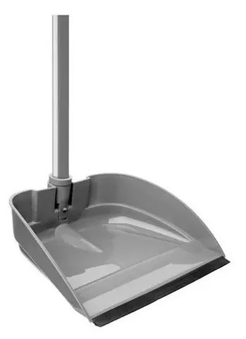 Pala de residuos plástica recta con mango largo.
